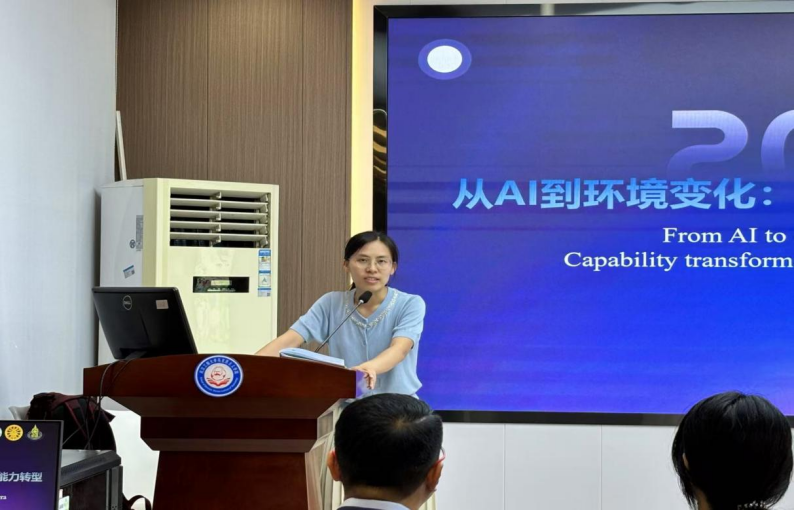 本网讯(通讯员 张悦悦)6月26日上午,,,,,泰国国立法政大学经济学院Kiatanantha Lounkeaw博士和宋卡王子大学经济学院Eva Ayaragarnchanakul博士应邀做客我院第92期“求是论坛”,,,,,并作了题为“从人为智能到气象变动:驾驭21世纪的伟大转型”的专题讲座。。。。。。。本次讲座由刘丽芳副教授和胡秋梅博士主持,,,,,学院部门老师以及钻研生受邀参加了这次讲座。。。。。。。