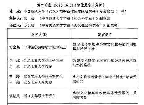 本网讯(通讯员 贺玲)2025年11月7日至9日,,,,,,,,第二届全国村落文化高层论坛暨“村落文化创新与文化强国建设”学术论坛在中国地质大学(武汉)召开。。。。。。。。论坛由中国地质大学(武汉)主办,,,,,,,,中国地质大学(武汉)JDB电子官网与湖北村落文化发展钻研院、贵州财经大学JDB电子官网、贵州财经大学村落文化发展钻研院共同承办。。。。。。。。我院王颖教授与钻研生贺玲应邀参会并作主题讲话。。。。。。。。