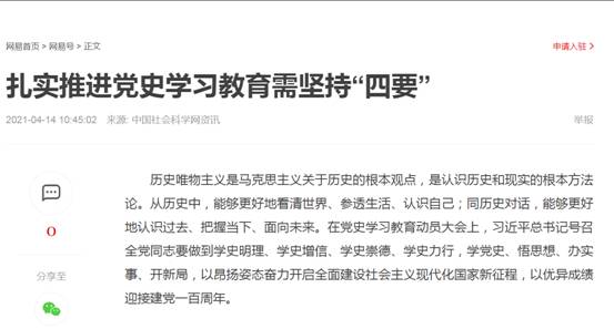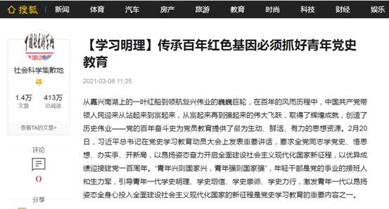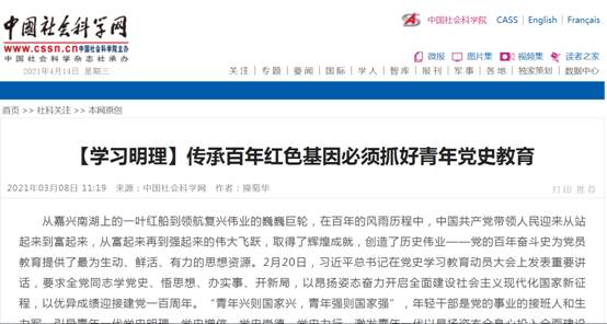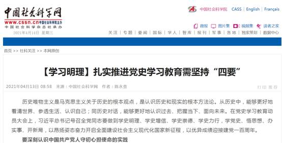 (通讯员 金诗灿)中共中央决定发展党史进建教育主题活动以来,,,,,,,我校JDB电子官网迅速响应党中央号召,,,,,,,依照学堂部署,,,,,,,积极组织老师发展党史教育专题进建活动,,,,,,,组织老师撰写文章,,,,,,,深刻钻研党史及若何发展党史教育,,,,,,,在《中国社会科学网》等多家主流网站颁发文章。。。。。。操菊华教授撰写了《传承百年红色基因必须抓好青年党史教育》(http://ex.cssn.cn/zx/bwyc/202103/t20210308_5316182.shtml),,,,,,,陈永贵博士撰写了《扎实推动党史进建教育需对峙“四要”》(http://ex.cssn.cn/zx/bwyc/202104/t20210413_5325923.shtml)。。。。。。文章颁发后,,,,,,,被搜狐、网易、中国汗青钻研网及今日头条等客户端转发,,,,,,,产生了积极影响。。。。。。