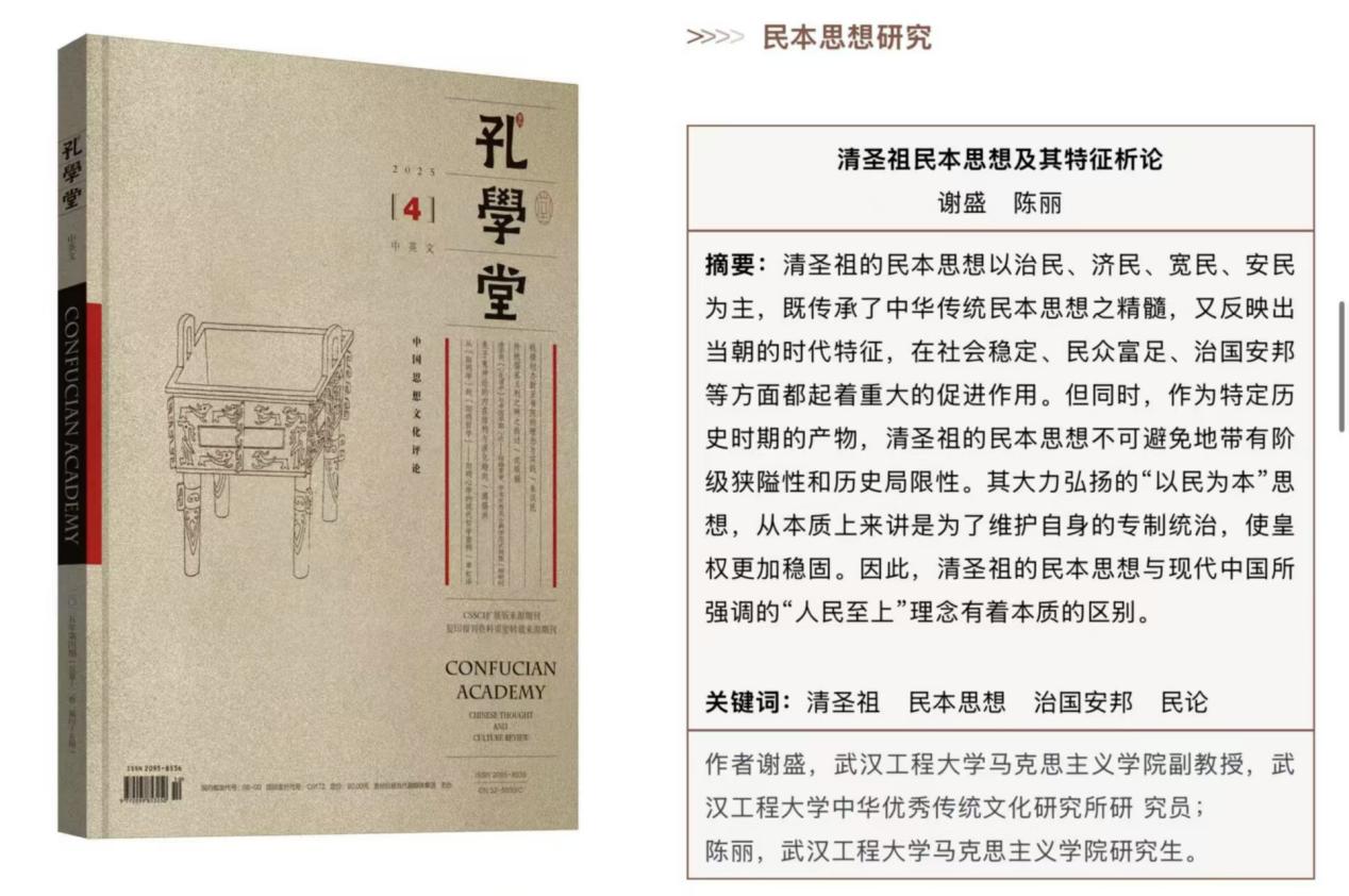 本网讯(通讯员 张晓 宋嘉怡)近日,,, ,,,,,我院谢盛副教授、硕士钻研生陈丽在《孔私塾》(CSSCI扩大版期刊)颁发论文《清圣祖民本思想及其特点析论》。。。。 。。。。