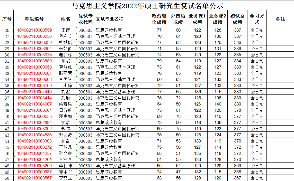 JDB电子官网2022年硕士钻研生复试名单公示