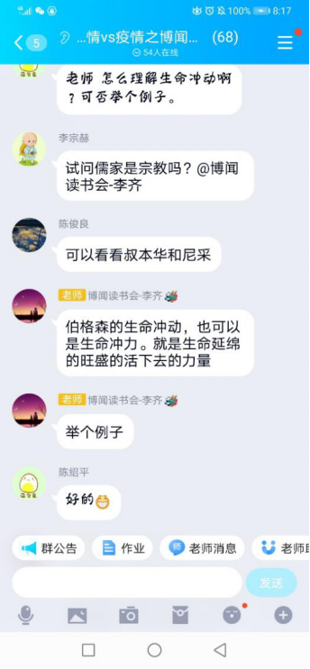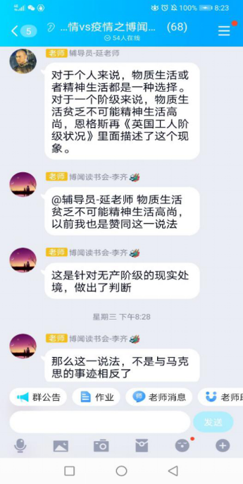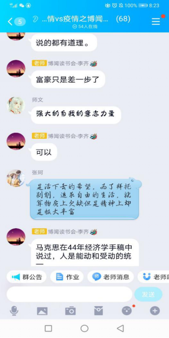 在这个特殊的日子里,,,,,同学们不仅看到了抗疫成功的曙光,,,,,也切实体味到性命的意思。。。。。马院学子一路会商了人生是选择题还是证明题、成长的意思、哲学是不是宗教的一连、若何意识自身的能量等问题。。。。。通过会商,,,,,各人越发深刻地体味到马克思主义无限的心灵力量,,,,,越发坚定了人生的梦想与方向。。。。。