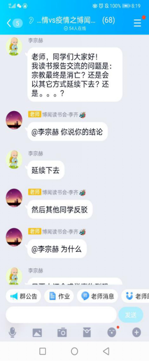 在想书会上,,,,,张欣同学与各人分享了她的想书感悟。。。。。她回首了《人生的意思与价值:奥伊肯卷》一书的媒介,,,,,提出钻研这本书是要让人们复苏地相识当下在遭逢的各类心灵问题,,,,,并致力让每幼我参加和解决这些问题。。。。。随后,,,,,李宗赫同学引用马克思有关宗教问题的概想,,,,,萦绕宗教的界说、作用等方面进行了分析,,,,,提出“宗教有着自身的社会价值和积极意思,,,,,但是随着社会的发展和出产力的提高,它将会被社会逐步裁减。。。。。”