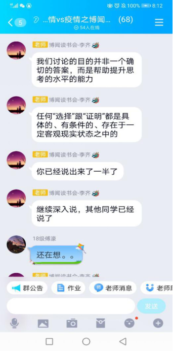 (通讯员 刘许超)新冠肺炎疫情期间,,,,,在教员们的携带和疏导下,,,,,马院学子以笔为友、以书为伴,,,,,养成了“好想书,,,,,读好书”的习惯。。。。。2020年4月8日,,,,,在武汉正式解除封城之际,,,,,马院学子发展了以“在成长中把握人生意思”为主题的想书互换会。。。。。本次想书会通过QQ平台进行,,,,,由李齐教员主持,,,,,2018级与2019级部门硕士钻研生参与了想书会。。。。。