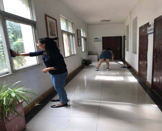 活动中,,,,,,,整个成员分工合作,,,,,,,顺次承担了扫地、拖地、擦桌子、擦窗户、捡拾杂物等工作,,,,,,,对整个学院进行了算帐。。。。。。。各人周到高涨,,,,,,,不怕脏、不怕苦、不怕累,,,,,,,用现尝试动营造出干净、整洁、明亮的进建工作环境。。。。。。。
